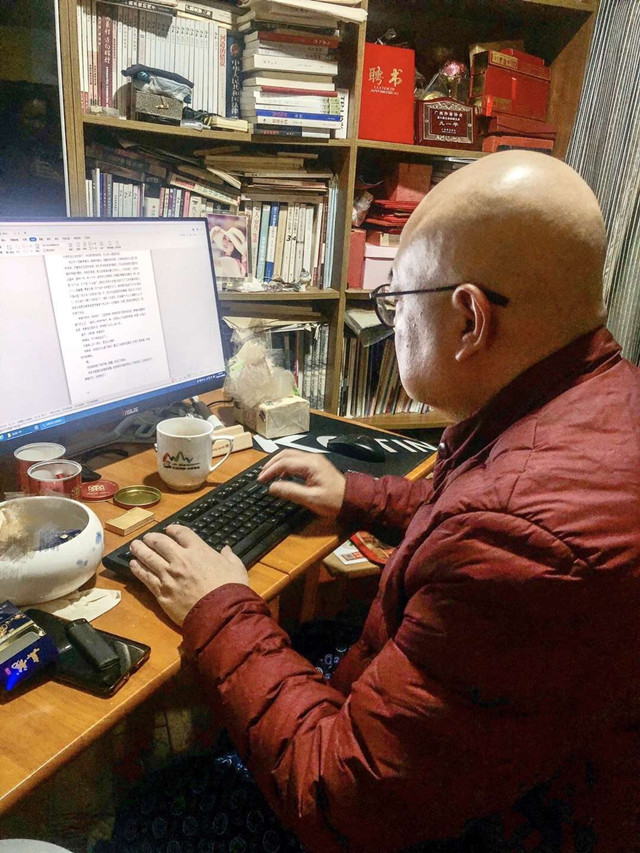 1月26日大年初二,山西作协副主席李骏虎在办公室值班。被爬山虎环绕的仿古建筑,棕框绿窗,门口挂了两盏红灯笼,衬着角落未化的雪,不显萧条,倒别有一番风味。为了响应国家号召,防控疫情,李骏虎主动退了返家的票。他同很多作家一样,心系疫情的同时,按照防疫提醒严格要求自己。
