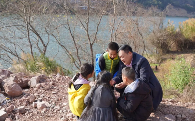 ▲谢有顺在村里给孩子们讲故事