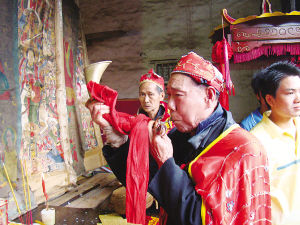侗族师公在祭祀先祖。