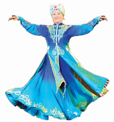年近80岁的著名舞蹈家崔善玉(前)在表演