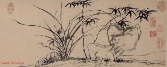 此手卷画兰、菊、竹三段,各有文氏亲笔题咏。用笔写意,简率之中见生动秀逸之致,墨色清润淡雅,显示了诗、书、画结合的笔墨境界。中国传统文化以拟人化的手法,通过褒扬兰、菊、竹的自然属性而歌颂或表彰文人的道德品质,体现了中国花卉画的特殊功能。