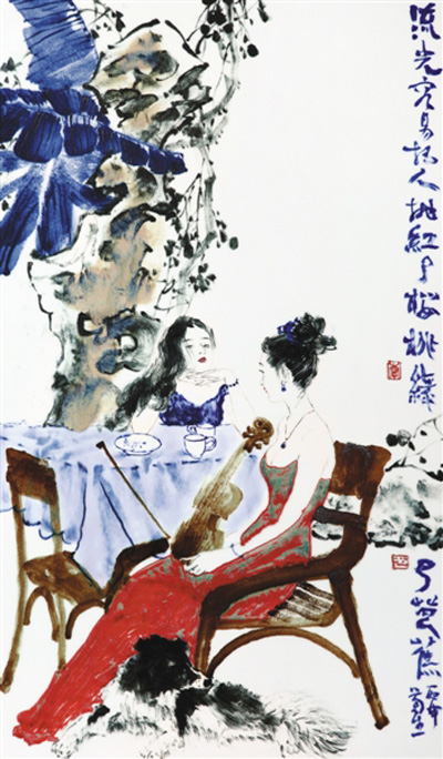 李菊生画“姑娘追”,画女人的漂亮,画男人的潇洒,画美也画“拙”“丑”“坏”。李菊生说“拙”是一种大巧。老子说“大巧若拙”,是一种“巧”的变形、抽象和夸张。“丑”“生辣”“坏”也是厚重之美,陈酿烈酒的甘醇。“坏”是聪明、智慧、幽默、诙谐的外表。“丑”是一种微醺之美,熟透了的美。“丑”“坏”的美与真正的丑、真正的坏只有一纸之隔,但却有本质的区别。