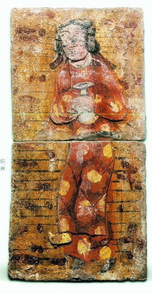 彩绘持瓶侍女砖(辽金)