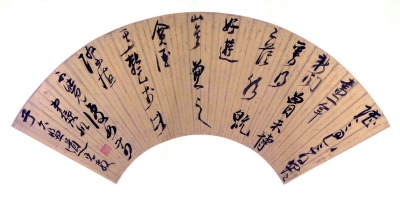 《晋书》中所记“但言是王右军书,以求百钱可也”的故事,当见扇面与书法相得益彰,人之为宝,扇子的收藏也初见端倪——本来只是作为拂暑工具的扇子,一旦有名家在其上创作的书画,或进而配上高手的雕骨,其价值就远不只于拂暑了,竟成了一种温雅的文化载体,如吴冠中为某扇艺大展题词:“扇子送凉,不意成艺。”