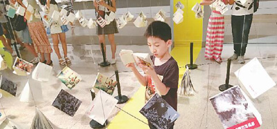 小读者在“故事绘——中国美术馆藏连环画原作精品展”上阅读。本报记者 刘彬摄/光明图片