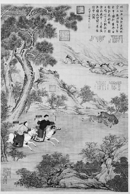 《乾隆皇帝射猎图》轴(局部) 清