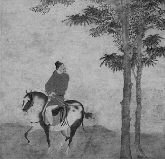 《挟弹游骑图》轴(局部) 元