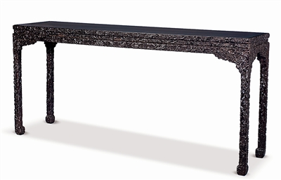 御制紫檀木雕梅花图束腰条桌 清