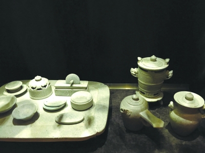 唐代孔雀石茶碾、煮茶器、茶壶、茶杯