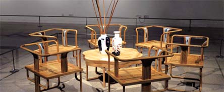 把瓷板镶嵌进木材做成家具,难度可想而之,瓷的窑变本就难以控制,再与另一种材质融合,还要优美和谐,实在不易,所以,当那些或具古意或颇文艺的家具摆在房间里时,看到的人几乎都为艺术家的设计与实践而感慨。世间材质万千,都有其存在的意义和旨归。兀自生长,它们是天地间的造化,若遇到识才之人,把它们的纹理、颜色以符合本真的方式做成艺术品,也是另一种遇见。自然,这里面是出境界的。无论一幅画、一只瓶,还是一把椅子,浑然天成是最重要的,设计的意义在于最大限度彰显它的特质,不抢戏,不生硬,不矫情。陈家泠的设计大多做到了这一点,谈到国内的建筑设计时,总是淡然的他有些痛心疾首,不解那些设计师为什么把楼设计得那么丑陋不堪,在他看来,误导民众的审美是极大的罪过。他至今所花的气力,也不过是寻美而去,做一些赏心悦目的艺术罢了。