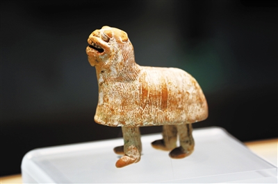 唐《舞狮俑》。(新疆维吾尔自治区博物馆)