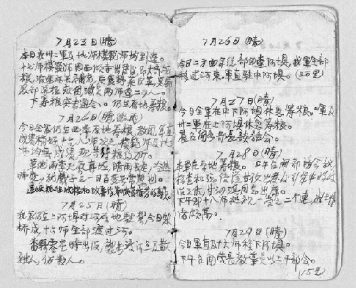 1936年7月23日,他的日记记载:“十七师、模范师自西倾寺出发后,即大部无粮,沿途亦无补充,尽食野菜、皮革、臭尸,致部队极疲困,减员两师达二百人。”