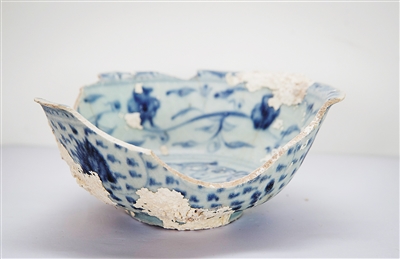 一只残缺的清末民初青花碗