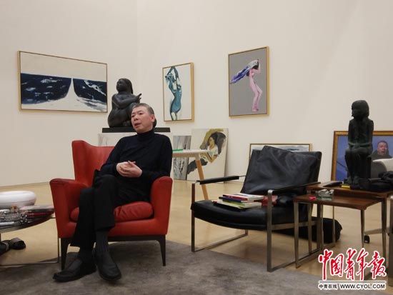 这个画室里一切物体的色彩都有着高饱和度和对比度,和冯小刚的语言一样利落。他随意地倚坐在红色的单人沙发上,说:“开始吧!”