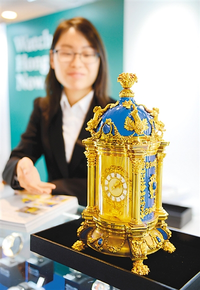 富艺斯拍卖行工作人员在介绍古董钟表拍卖品。 新华社记者 秦 晴摄