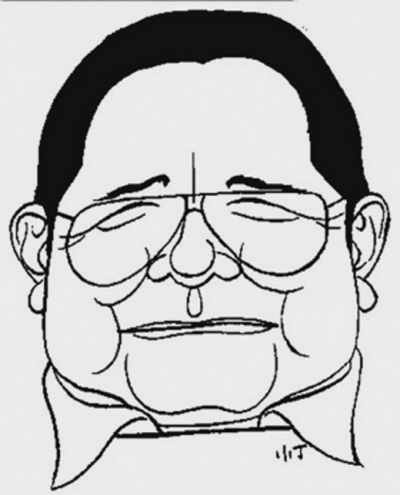 其他如杨绛先生题自己漫画肖像:“我活到八十岁,只是一个偶然。活不到,不是我的过失;活到了,也不是我的功劳……”顺遂自然,葆有寻常心,恰恰不仅仅活得长久,而且活得从容,活得精粹。著名社会学家费孝通,面对自己的漫画肖像,也生发几分幽默:“长得不那么好看的人,不大愿意常常照镜子。我很怕人家替我画像,说人家画得不像,不礼貌。说画得像,不是自认长相难看么?做人要有面对真相的勇气,似乎不那么容易。”看看,说着说着又论起事理来,终不脱学者味道。最后看看丁聪自画像边上的自述:“我好像是个老也长不大的老小孩,屡跌泥坑,仍然不谙世事。”是吗?“老小孩”就该“屡跌泥坑”?单纯、少机心、持守良善,就是“不谙世事”?这等世事,少“谙”也好。终于,丁聪老人成了人们怀想的人物,那些费尽机心,似乎一时风起云烟的家伙,却早早被时间消解。此时,人们该羡慕丁聪这样的“老小孩”才是。丁聪先生说了一句老实话,可时间却验证成一种漫画家的反讽。