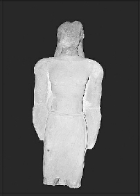 这件雕像的背部扁平,本来可能是靠墙而立。雕像人物身体表面残存有红色颜料的痕迹,裙装之上本来涂有白石膏,二者形成鲜明的对比。根据该神庙中出土的另一尊雕像上的刻铭判断,这尊雕像人物应该是里西安时期的一位统治者。