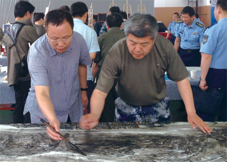 吴长江、邵璞、李翔在写生创作活动中(左起)