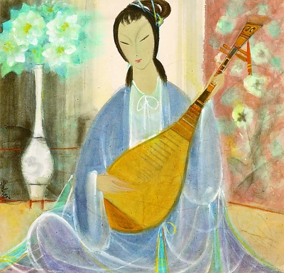 林风眠《琵琶仕女》,1960年代,66×68cm,中华艺术宫藏