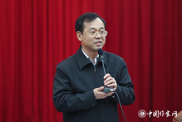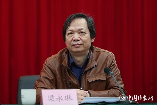 人民日报社文艺部主任梁永琳在颁奖仪式上介绍征文情况