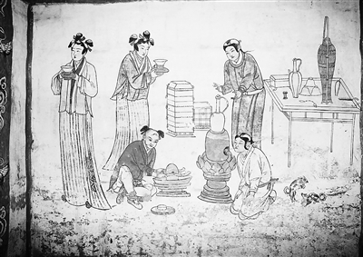 更有趣的是,在所有壁画中,都只描绘了忙碌的侍者,而作为服务对象的墓主人,却从未在壁画中出现过。“这种虚实结合的绘画表现手法,反而把墓主人的身份和地位衬托得更为尊贵。”刘海文说。
