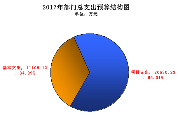 电竞竞猜官网2017年支出预算31736.35万元,其中:基本支出11106.12万元,占34.99%;项目支出20630.23万元,占65.01%。