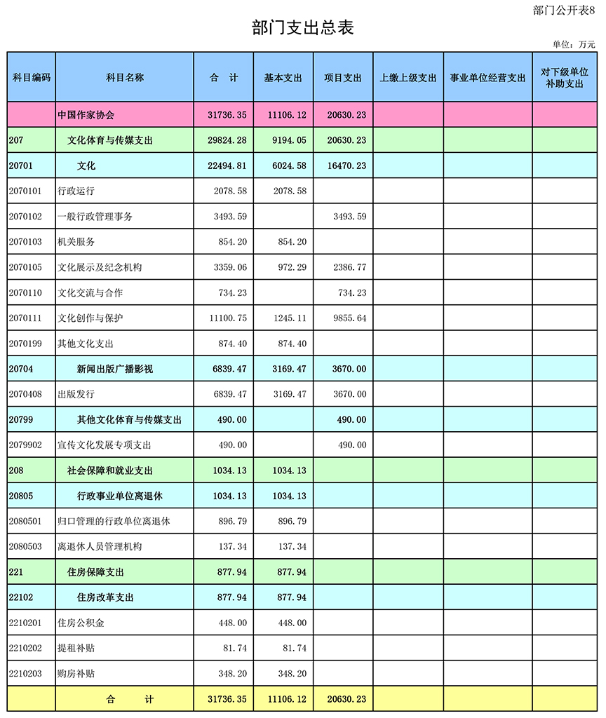 八、部门支出总表