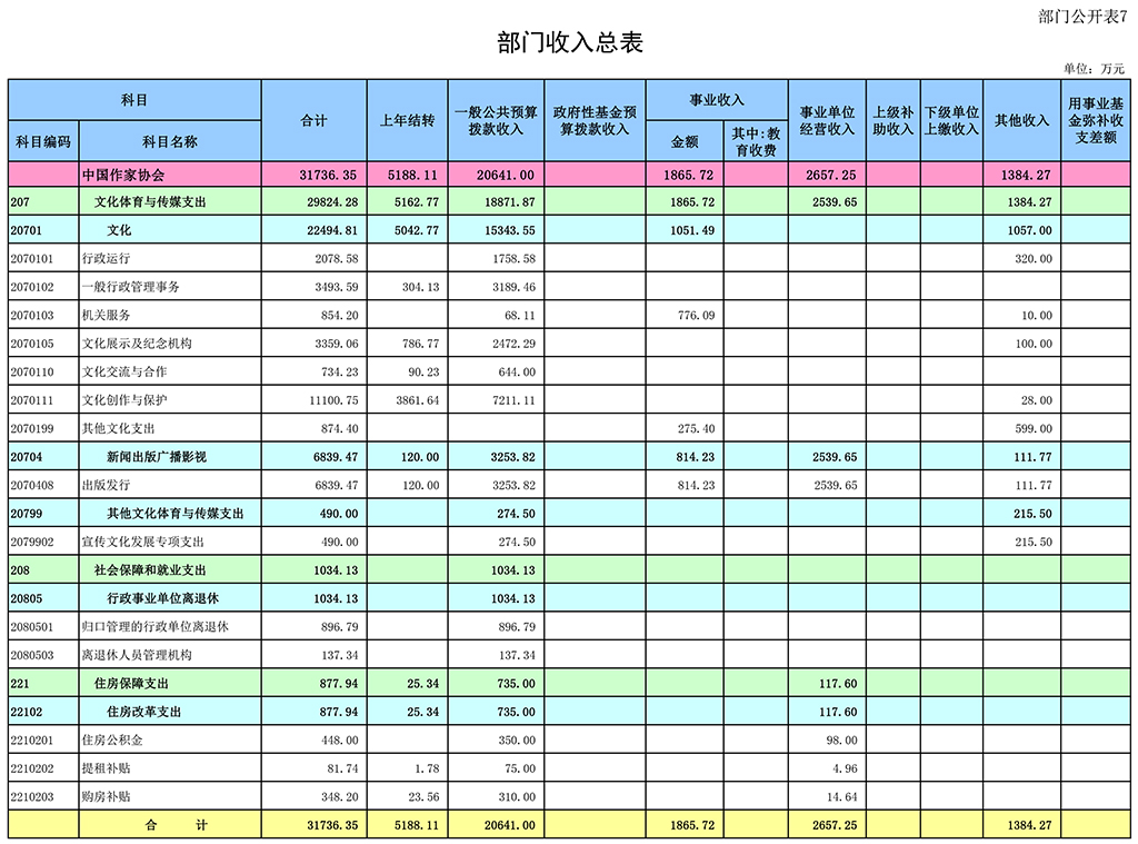 七、部门收入总表