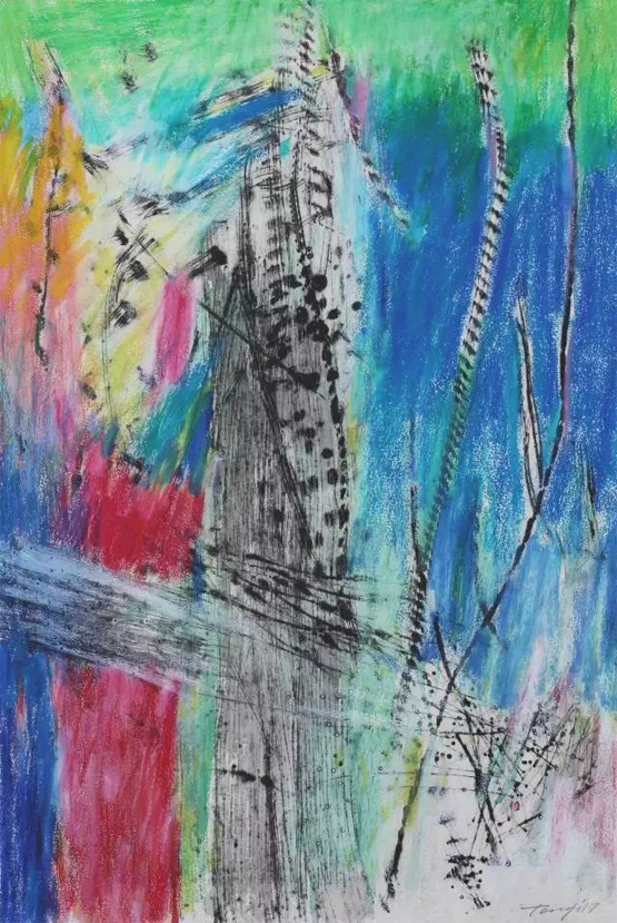 “行走的风景”系列作品以景色为主,色彩绚丽,虽寥寥数笔,但生机却扑面而来。站在他的作品面前,睁开眼睛,是四面笼罩而来的汹涌生命;闭上眼睛,则是交织纵横的眩晕风景。这支画笔是任性的、挥洒的,却又是含蓄的、思索的、耐人捉摸的。吸引电竞竞猜去捉摸的,不仅仅是如云色彩的铺陈和乐章般的点线跳跃,因为电竞竞猜仿佛看到了风景,却又希望看到风景背后的离奇。