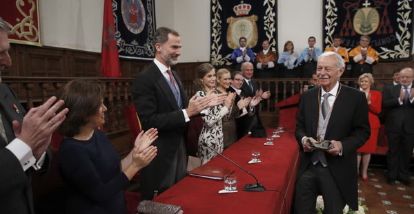 由于今年的4月23日是周日,于是就提前了三天。4月20日,2016年的塞万提斯奖获得者,西班牙作家爱德华多·门多萨(Eduardo Mendoza),在塞万提斯的故乡阿尔卡拉大学接受了这枚代表西语文学最高荣誉的奖章——塞万提斯奖。