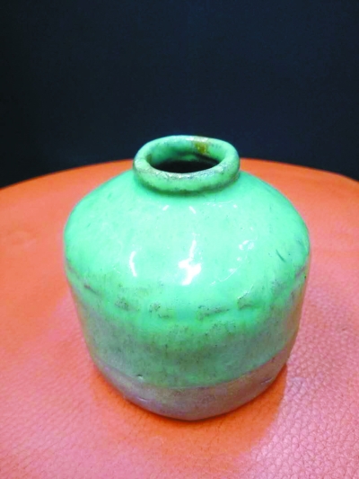 “虽然有的宜兴紫砂壶挂了釉,但紫砂壶的底部是露胎的,不会把釉挂满。紫砂有透气性,不能全部封死。”朱银木指着手中明晚期的水呈说。这只水呈是白砂挂月白釉,古朴典雅,高十厘米,宽八厘米,精致小巧,拿在手中十分轻盈。它在文人墨客的案桌上经历了漫长的岁月洗礼,光泽依旧。