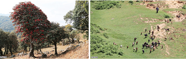 图左:故乡的树 图右:羊群奔跑