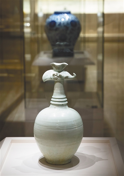 青白釉花口凤首壶。