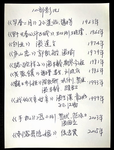我还记得与逄小威先生讨论达成这样的布展计划之后,他回到家中,很快就写好了一份电影作品单给我——他是手写的这份电影单,字写得漂亮大气。逄小威一部部电影给我介绍,仔细解释他最终选择这十部作品的考虑,并且非常谦逊地询问我的建议。我深深折服于逄小威对于中国电影史如数家珍般的熟悉和他对这些电影作品的深刻理解,更是打心眼里钦佩他的认真、勤奋和谦逊、真诚。