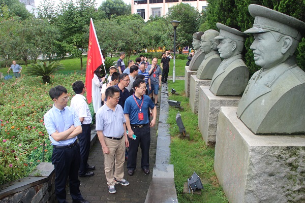 江西的革命版图上珍藏着民族精神的密码,为文学创作提供着不竭的历史资源。采访团一行风尘仆仆来到江西南昌,首先参观了江西革命烈士纪念堂,拜谒了25万烈士英灵。在英烈们坚定的革命理想与信仰面前,作家们无不受到心灵的震撼,心中都有许多感悟和感想。7月10日,采访团一行来到湘赣边界秋收起义前敌委员会旧址肖家祠、铜鼓秋收起义纪念馆、秋收起义革命烈士纪念雕塑园,寻访当年毛泽东主席率领起义队伍走过的革命道路,追忆毛泽东主席发动秋收起义的历史往事,感受毛主席“农村包围城市”重大战略思想的形成历程。在铜鼓秋收起义阅兵广场,采访团瞻仰烈士铜像,深切缅怀革命先烈,体悟秋收起义精神,并仔细考察有关史料史实,深入了解革命历史,接受红色精神洗礼。11日,采访团到江西永新三湾改编纪念馆、湘赣革命纪念馆等革命历史遗址参观走访,重点了解“党指挥枪”这一人民军队建设根本原则的确立以及革命根据地的土地革命、文化经济建设等历史情况。