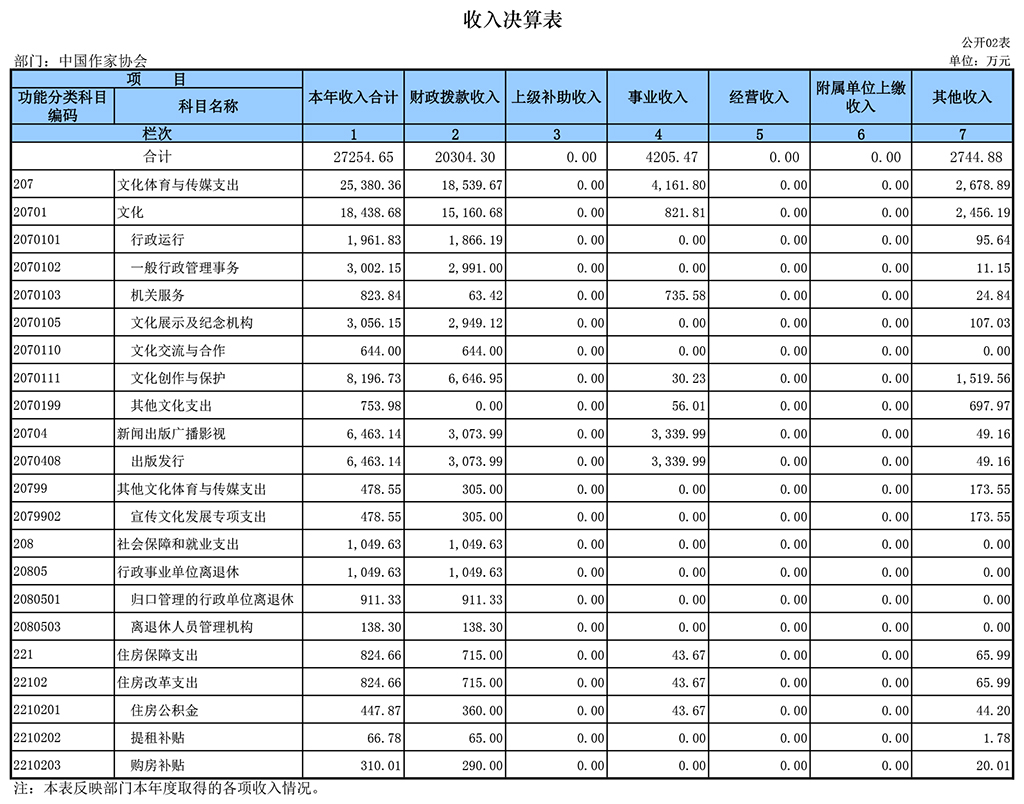 二、收入决算表