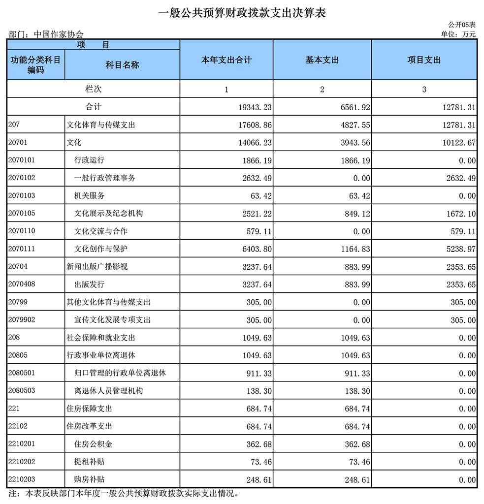 八、文化体育与传媒(类)文化(款)一般行政管理事务(项):指电竞竞猜本级组织作家深入生活等各项支出。