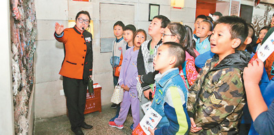 四川省眉山小学生到建川博物馆参与“追寻先辈足迹,弘扬民族精神”的教育活动。 张忠苹摄(资料图片)