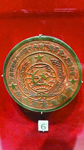 来到“在土地革命战争中诞生成长”展区,可以看到明亮的玻璃柜里陈放着一枚醒目的大印,即“中华苏维埃共和国执行委员会人民委员会革命军事委员会”印。