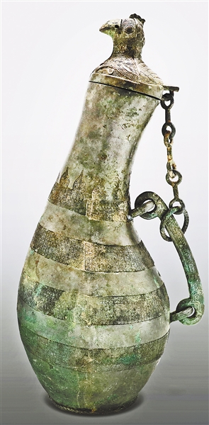 就像那只奇特的鸟盖瓠壶,萦绕着古人的心念。它是一种动物和一种植物,即鸟和葫芦的巧妙合体。鸟爪抓蛇,喙可开合。整壶轮廓像一只报晓雄鸡,神采奕奕,恰似古天文星象中“瓠瓜星”亦即“天鸡”之象,远非普通用品,而是只有特定身份才能使用的礼器,盛满玄酒,以祀上天,“一壶在手,运转乾坤”。