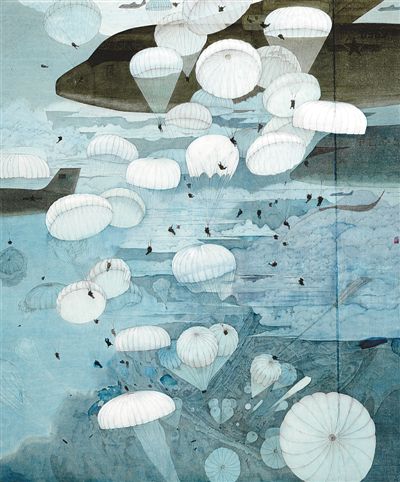 “一张一弛,文武之道也。”南宋以来的减笔水墨人物画传统,经过现代美术教育的训练,成为新中国现实主义军事题材绘画的主流画法,现在则结合了更多破墨、焦墨、宿墨的手法,在表现残酷、艰辛、勇猛的视觉体验时有了更加极致的运用,富有激情,但其主流地位已不复从前。古代人物画传统中最常见的工笔画,转而成为中国式的新写实主义中国画主体,在表现和平年代军事题材方面,如一缕清风,吹拂着热爱和平、珍视生命的心灵。这类作品屡屡在全国、全军美展中获奖,反映了当代军事美术不同于战争年代的一个维度。在今年的庆祝建军90周年美展中,可以看到,不仅这两种基本画风越来越成熟,而且得益于当代艺术理念的借入,航天部队、航空母舰等新题材、新视野的引进,以及年画、剪纸等传统民间美术形式的汲取,甚至传统界画手法的运用,参展作品展现出更加丰富、更加多元的面貌,充分体现出近年来军事题材美术创作的新气象。与此同时,一些借鉴了现代艺术中超写实主义的理念,以及印象主义的手法,以传统中国画技法经锐意创新而成的一类新作品,引领出了一种集现实主义形态、当代艺术理念、中国传统技法于一身的超现实中国画,在近年来的军事题材绘画中崭露头角。他们的艺术创新,对于电竞竞猜研究和思考当代军事美术如何传承与发展,具有重要的价值。