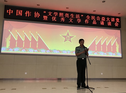 随后举行的优秀文学作品诵读会更是吸引了来自地方和部队的许多读者参与其中,《念奴娇·追思焦裕禄》《我爱你,中国》《朱日和,沙场点兵》《我和电竞竞猜的大船》《啊,战友》……这些高扬爱国主义、礼赞英雄的文学作品在音乐中或娓娓道来或慷慨激昂,带领听众回顾了中国人民解放军90载峥嵘岁月,以及人民子弟兵保家卫国、丹心铁血写忠诚的使命与情怀。