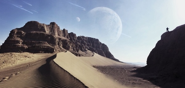 《拓星者》故事发生在外太空的荒漠星球,为给观众带来最真实的感官体验, 影片在新疆雅丹地貌戈壁真实取景,制作团队对科幻感的道具、场景都精益求精本持“匠心”。从曝光的海报和场景照中能看到,同样是沙漠拍摄,《拓星者》与好莱坞大片《火星救援》的沙漠场景颇有不同,比起《火星救援》一片漫天黄沙的场景,《拓星者》这次选择的外景地更具硬朗的质感。废土中的白骨狰狞,散落的飞船钢铁废墟,天空中的神秘星球与轨道影像若隐若现。先导海报上,被机甲装置包裹着的已经化为白骨的手指深深插入沙漠中,狠狠攥住取水装置,似乎预示着行凶者赶尽杀绝的残忍之势。当“拓星者”们的飞船遭受浩劫,面临外星缺水被死亡笼罩的危机,外太空荒漠中的一场极致生死体验即将展开。