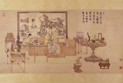 ΪÁËÕ䲨°üÀ¨ÍõÏ×Ö®¡¶ÖÐÇïÌû¡·ÔÚÄÚµÄÏ¡ÊÀÕ䱦£¬Ç¬Â¡µÛ½«ÑøÐĵîÄÚÒ»¼äÑÅÊÒ´ÍÃûΪ¡°ÈýÏ£Ìᱡ£Í¼Îª¡¶ÖÐÇïÌû¡·
