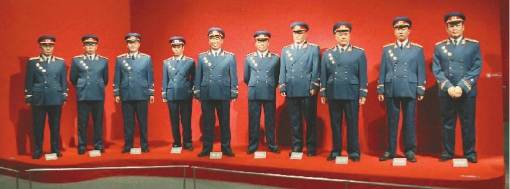 除了文物,展览还展出了“十大元帅”的蜡像。朱德、彭德怀、林彪、刘伯承、贺龙、陈毅等“十大元帅”蜡像吸引了众多观众的目光。这十尊蜡像身高比例与真人一样,形态传神逼真,观众不时发出“真像! ”“这些蜡像看上去比真人年轻”的感叹