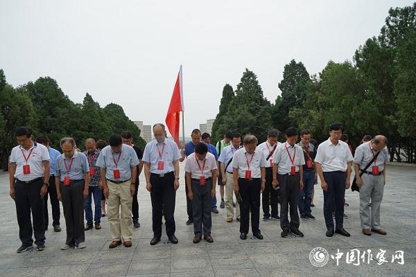 采访团来到塔山烈士陵园,并向烈士默哀 摄影:樊金凤