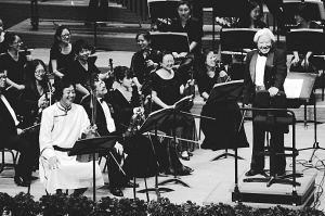 永儒布交响作品音乐会圆满成功,永儒布(右一)向观众致谢。 资料图片