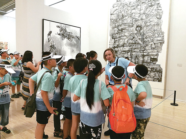 熙熙攘攘的观展人流中,不同肤色不同年龄的外国友人无疑是一道亮丽的风景,马克西姆是北京外国语大学的一位留学生,他字正腔圆地说:“超赞!”露丝是个性格开朗的法国女孩,一进展厅,就兴奋地掏出随身携带的写生本坐在地上临摹,她说:“这些画很震撼,中国的文化很博大。”