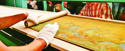 ÔÚÎçÃÅ-Ñã³áÂ¥Õ¹Ìü£¬¼ÇÕß¿´µ½£¬³¤´ï11.9Ã׵ġ¶Ç§Àï½É½Í¼¡··ÅÖÃÔÚרÃÅΪËüÁ¿Éí¶¨ÖÆµÄÕ¹¹ñÖУ¬¹¤×÷ÈËԱСÐÄÒíÒíµØ½«ËüÒ»µãµãµØÕ¹¿ª¡¢ÆÌƽ¡¢Ñ¹ºÃ±ß½Ç¡£¾ÝÏÖ³¡µÄ¹¤×÷ÈËԱ˵£¬ÕâÊǸÃͼÊ×´ÎÈ«¾í´ò¿ªÕ¹ÀÀ¡£