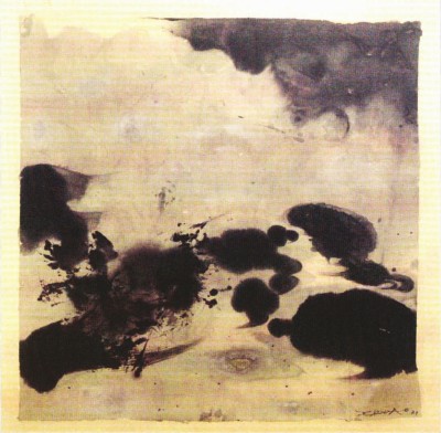 赵无极的第一幅水墨作品首次展出,其间藏着这位久居法国的油画大师隐秘的惆怅。这幅画源自赵无极1971年无意间的一次尝试,没有清晰可辨的形象,只有墨迹的晕染,甚至纸上出现了一个破洞。彼时,他的妻子、电影演员陈美琴患有严重抑郁症,状况极度恶化,这令赵无极无法潜心创作油画,情绪低落以至饮酒度日。有位瑞士的朋友提醒他,为什么不尝试一下中国的传统水墨。赵无极遂拿起笔墨纸砚,尝试着缓解内心的压抑。或许是因他一直从事油画创作,加上心情波动较大,难以控制笔势,结果绘画时画笔将宣纸戳了一个洞。随后,这幅“坏”了的画被扔在了工作室的角落,是一位朋友的到访“拯救”了它,从中读出笔墨承载的情绪,并向赵无极索要了签名之后将其小心翼翼地收藏起来。